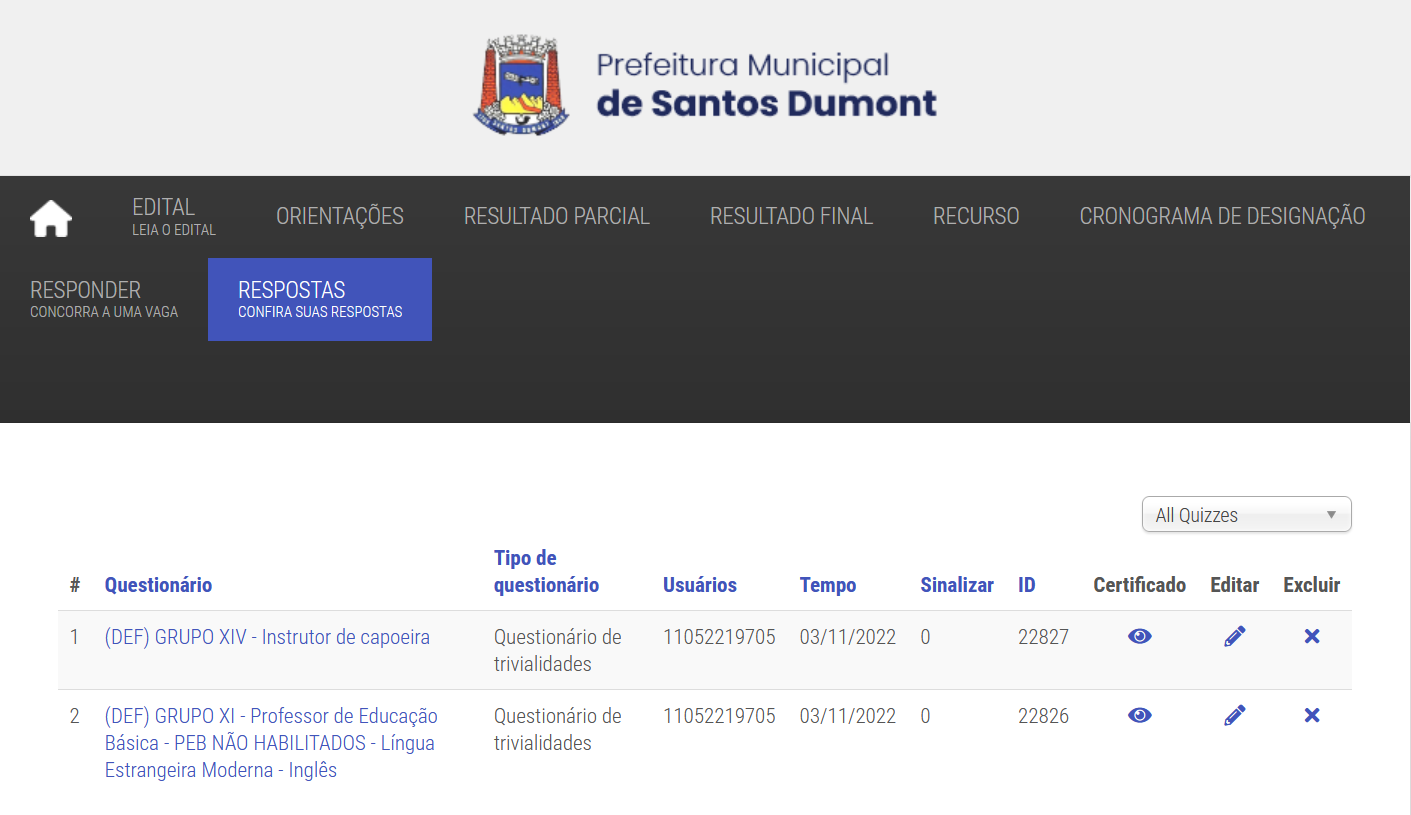 1º) Acessar o sistema: http://contratacoes.santosdumont.mg.gov.br/